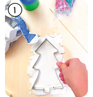 Den Ton rollen wir aus und stechen mit einem Ausstecher die Tannenbaumform aus.