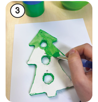 Wir bemalen den Tannenbaum grün und lassen ihn trocknen.